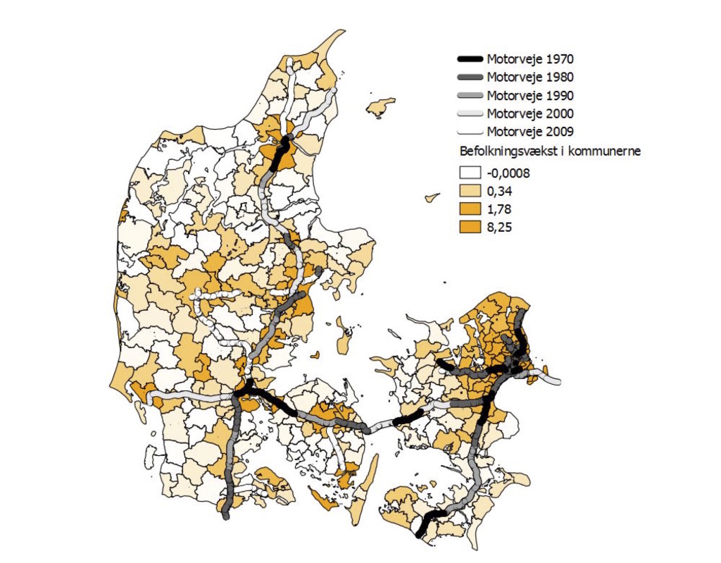 Tænketanken Kraka har den 20. marts i år udsendt en rapport om dette. Nicolai Kaarsen og Christoffer Jessen Weissert har lavet statistiske analyser af hvordan motorveje har påvirket befolkningstallet i danske kommuner. Deres konklusion er denne: